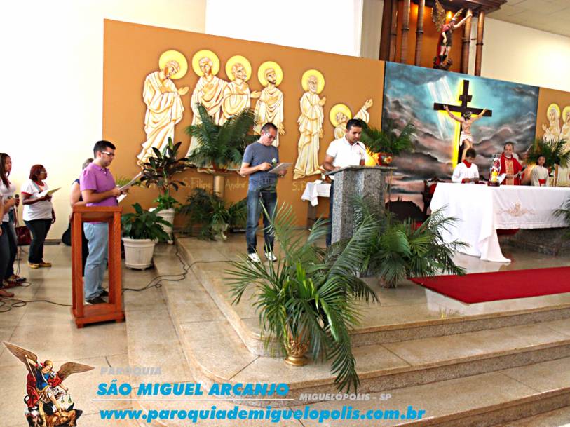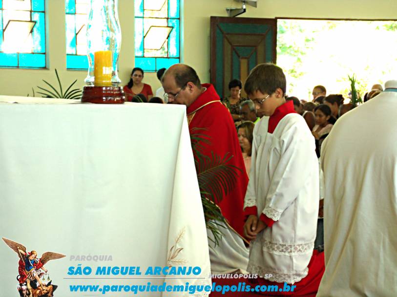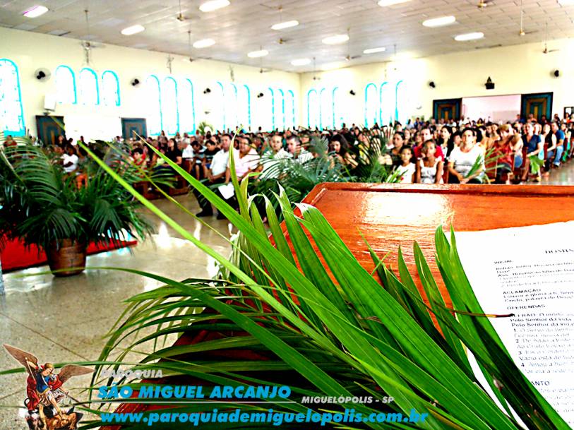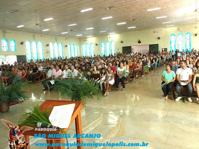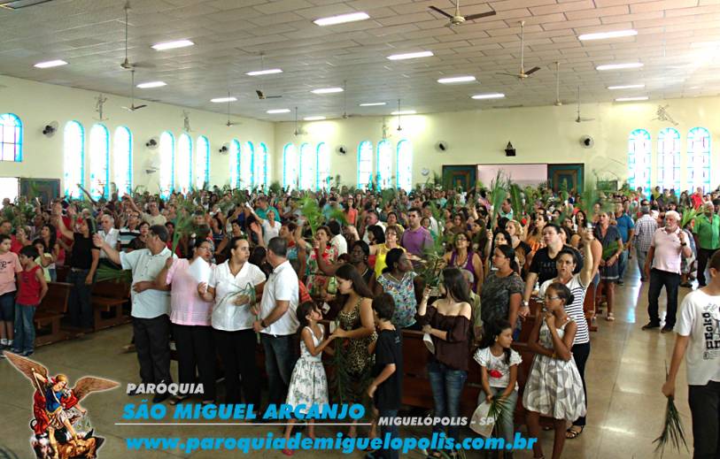 Uma missa festiva e com a participação de toda a paróquia de Miguelópolis, iniciou-se com uma leve caminhada em procissão até a entrada triunfal de jesus cristo.