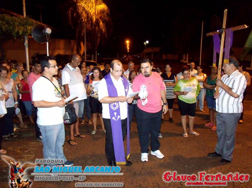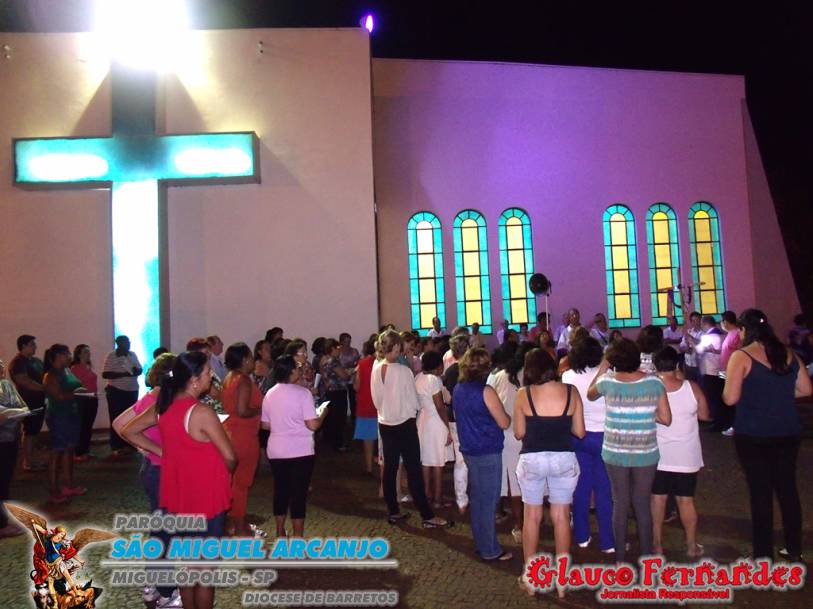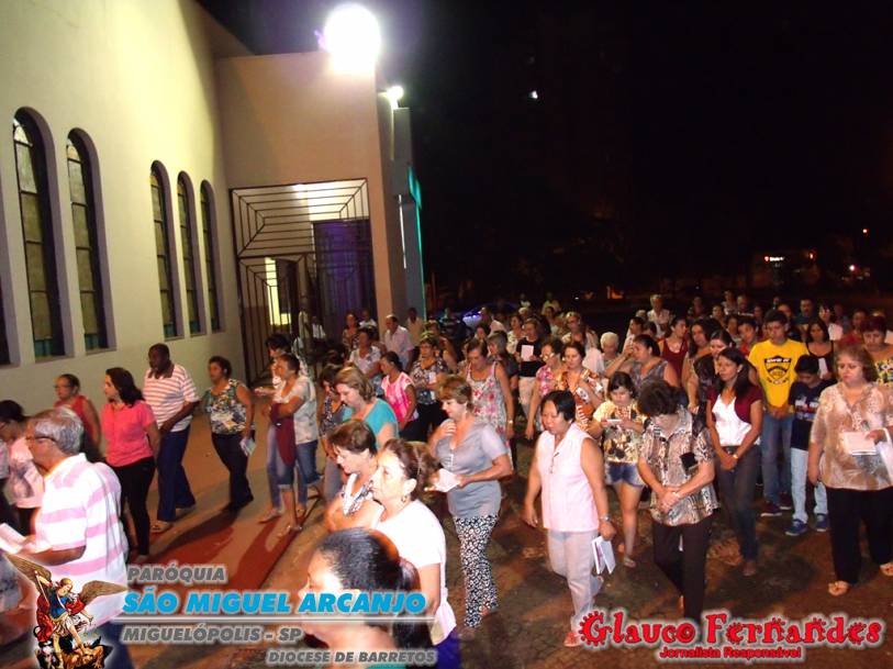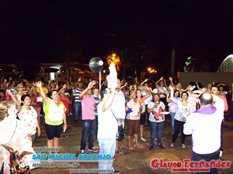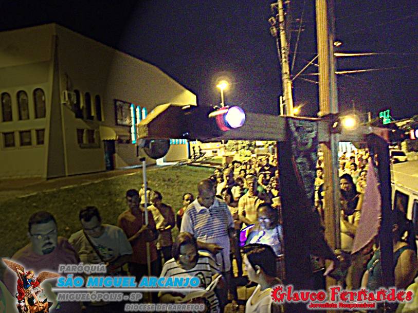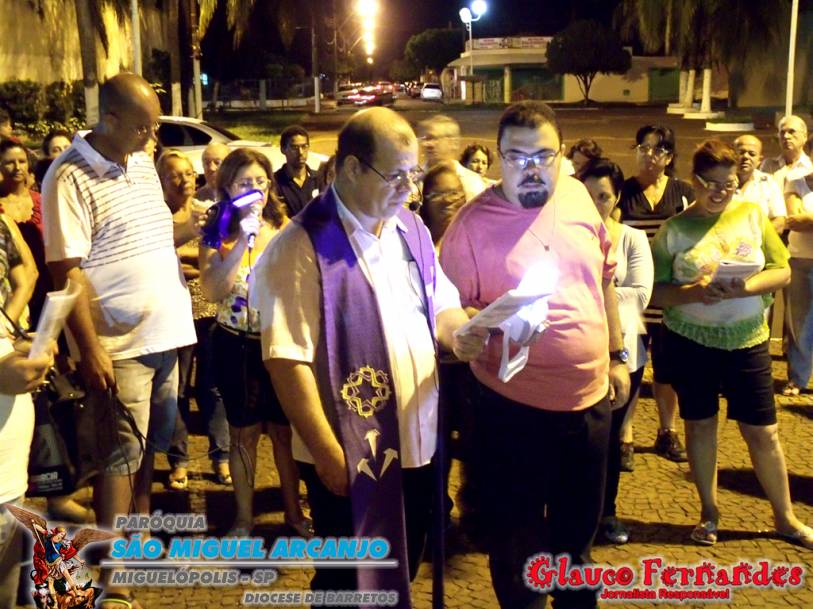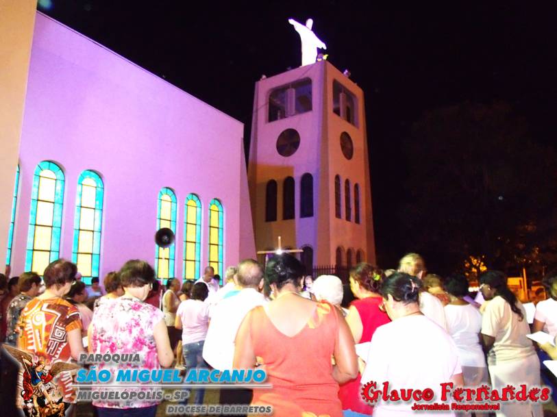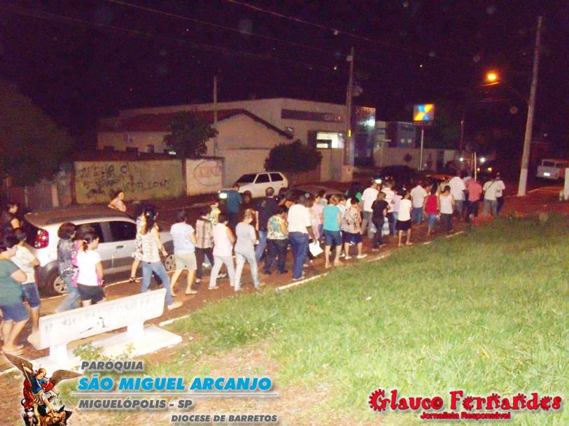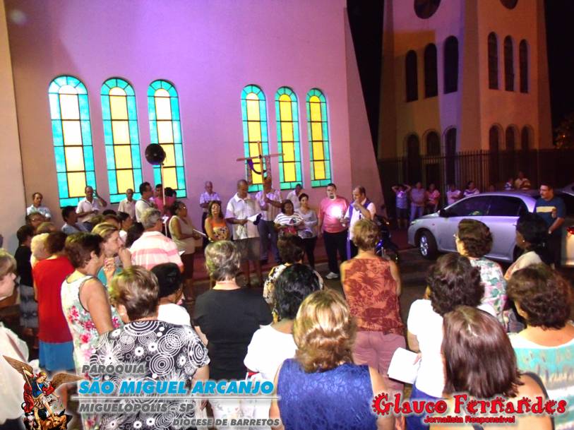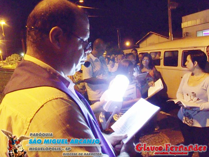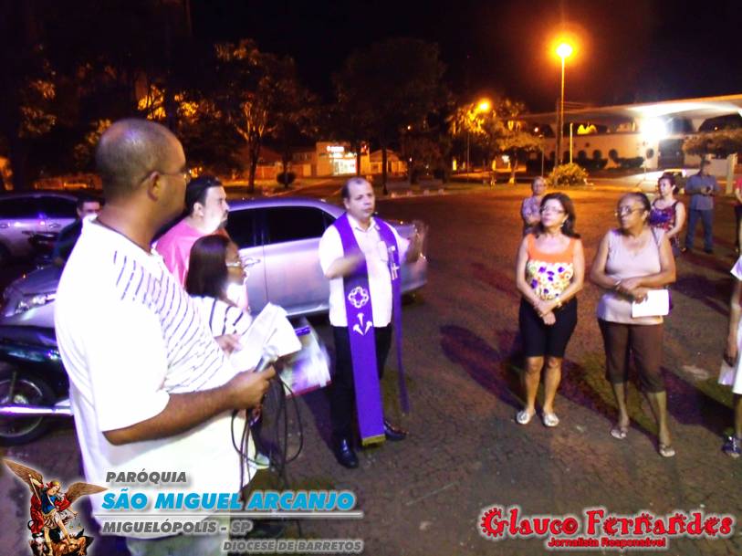 Muitos fieis acompanharam o percurso juntamente com o pároco Padre Evandro de Sousa e também o seminarista Carlos Araki.